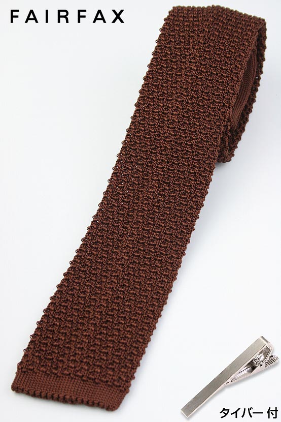 【送料無料】(フェアファクス) FAIRFAX タイバー付 ブラウン系 無地 ニットタイ シルク100% ネクタイ イタリア製|父の日 結婚式 ネクタイ ブランド おしゃれ プレゼント メンズ 男性 ワイシャツ ギフト 高級 かっこいい