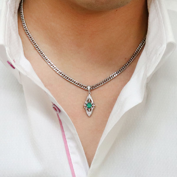 5月誕生石エメラルドを使用したプラチナ製の、メンズペンダントヘッドです。