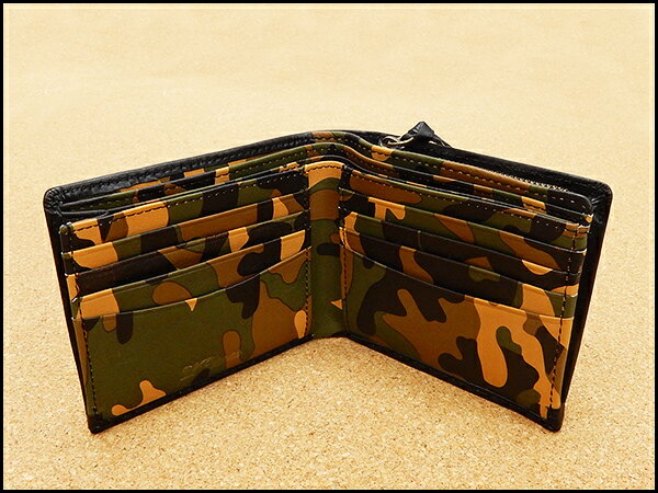 二つ折り財布 商品詳細 スタイル 二つ折り財布 カラー 黒 内部:迷彩 柄 無地(スムース加工) 素材 表面:牛革 内部:牛革および布生地 サイズ (約):H95×W115×D40 mm 仕様 ・カード入れ:12箇所 ・ポケット:2箇所 ・小銭入れ:ファスナー1箇所(マチ付き) ・札入れ: 3箇所 ・中国製 付属品 紙化粧箱 ポスト投函便指定の場合は付属いたしません 注意事項 この商品は革の素材感を生かすため、多少のムラ、小傷等を残した特性があります。